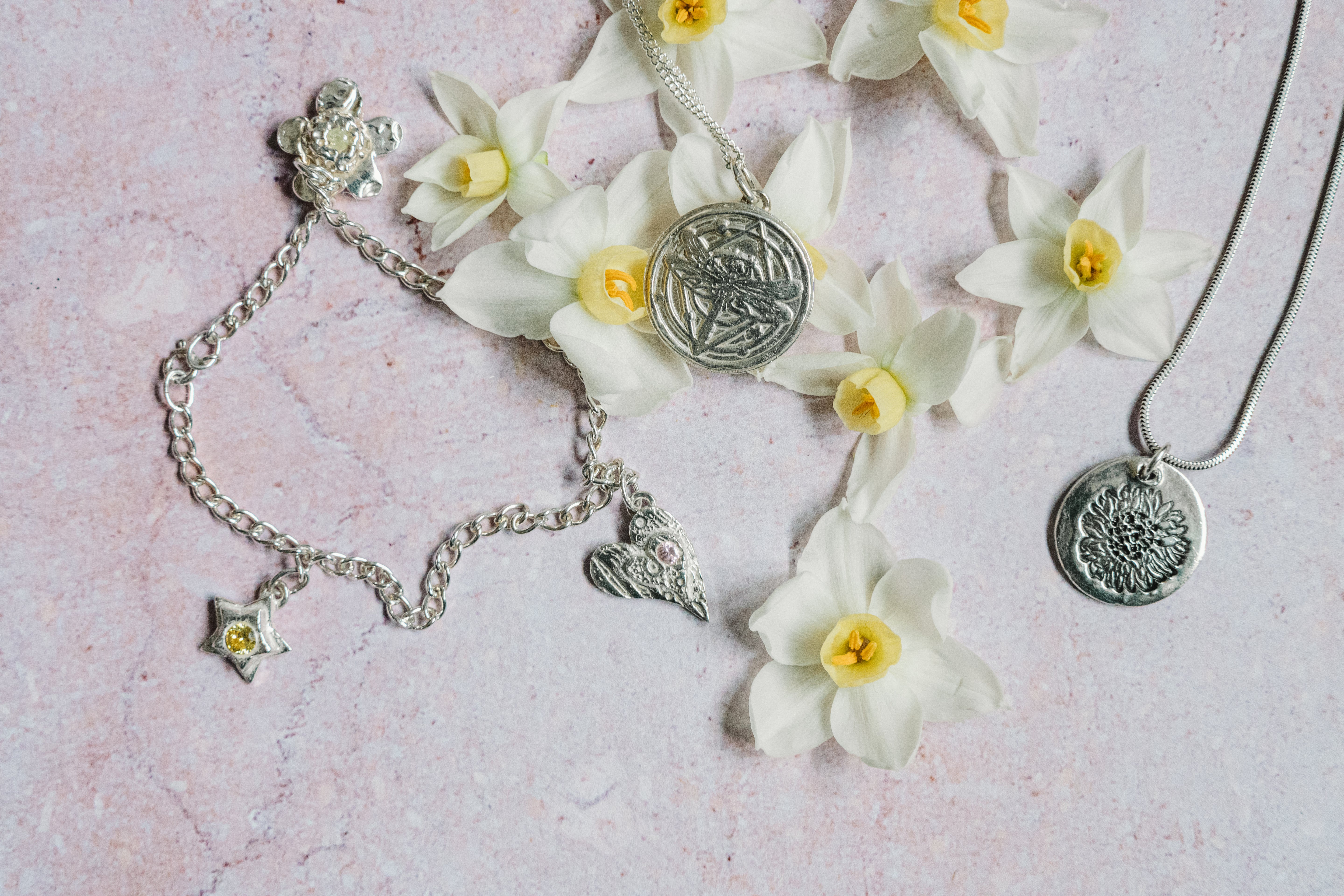 Each piece begins with intention. Sue works with recycled silver and eco-friendly materials, crafting every design by hand using sustainable silver clay techniques. It’s jewellery with a lighter footprint and a deeper story, one that honours both the planet and the people who wear it.
